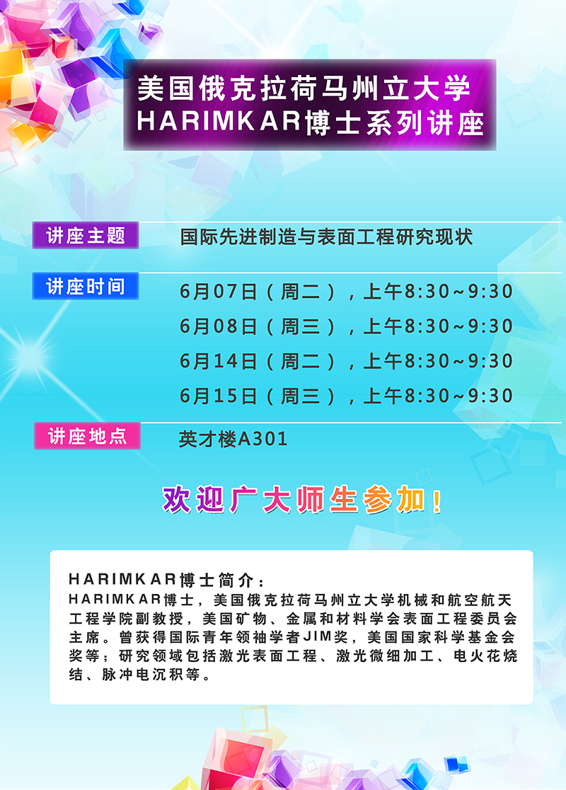 美国俄克拉荷马州立大学HARIMKAR博士系列讲座