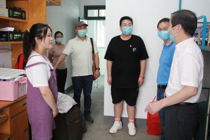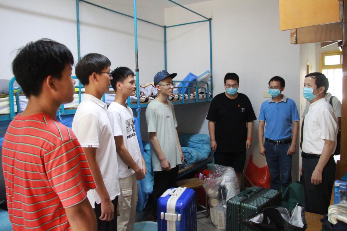 9月7-8日,太阳成tyc7111cc集团的迎新工作在如火如荼地进行,学院领导们也对新生的未来发展充满期待。9月8日早上,太阳成tyc7111cc集团党委书记刘丹平老师、院长丁坤老师、党委副书记董涌波老师、2020级辅导员李琛老师分别前往了四号楼男生宿舍和十四号楼女生宿舍慰问新生。