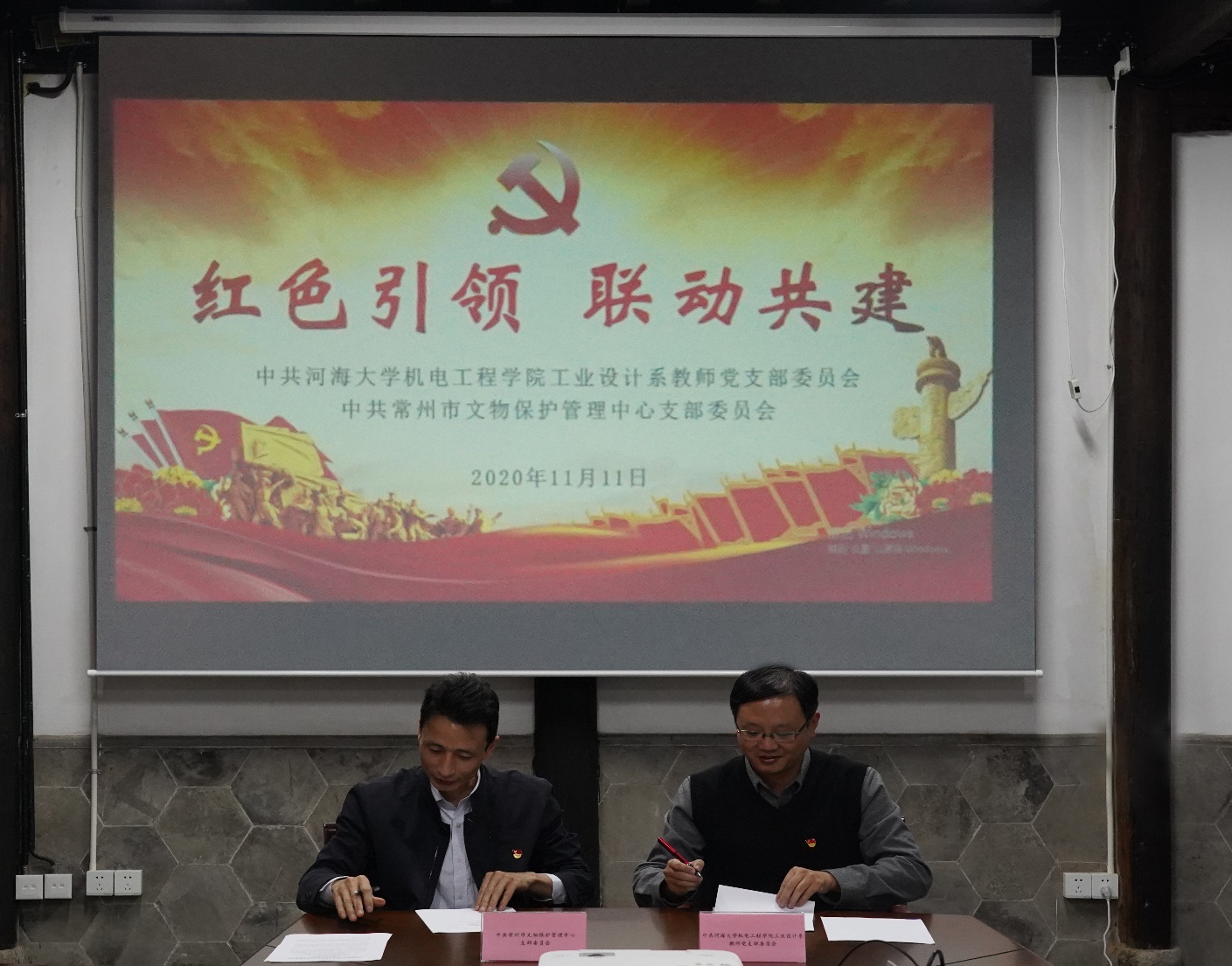 为了创新基层党建工作载体,提高基层党建工作水平,11月11日,太阳成tyc7111cc集团工业设计系教师党支部与常州市文物保护管理中心党支部在民元里1号举行党建共建签约仪式。