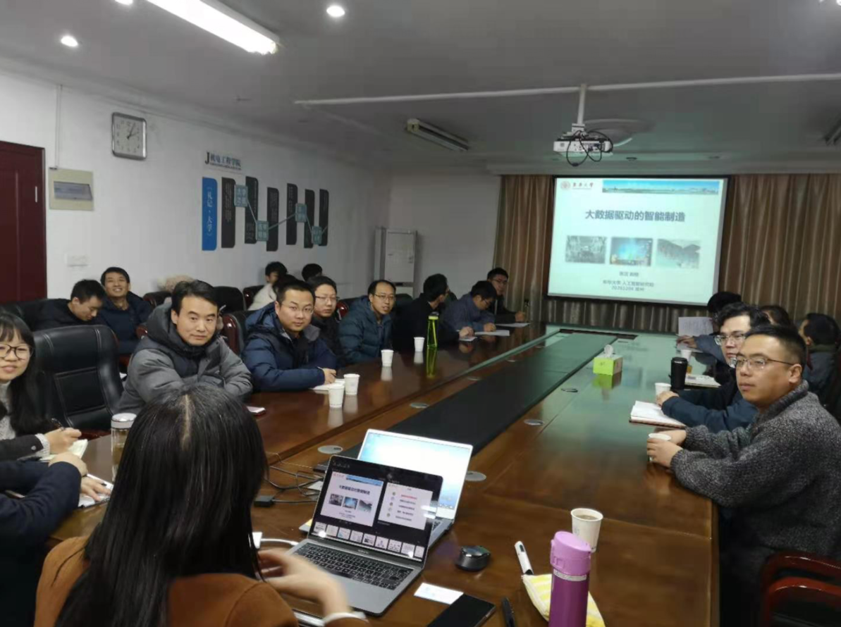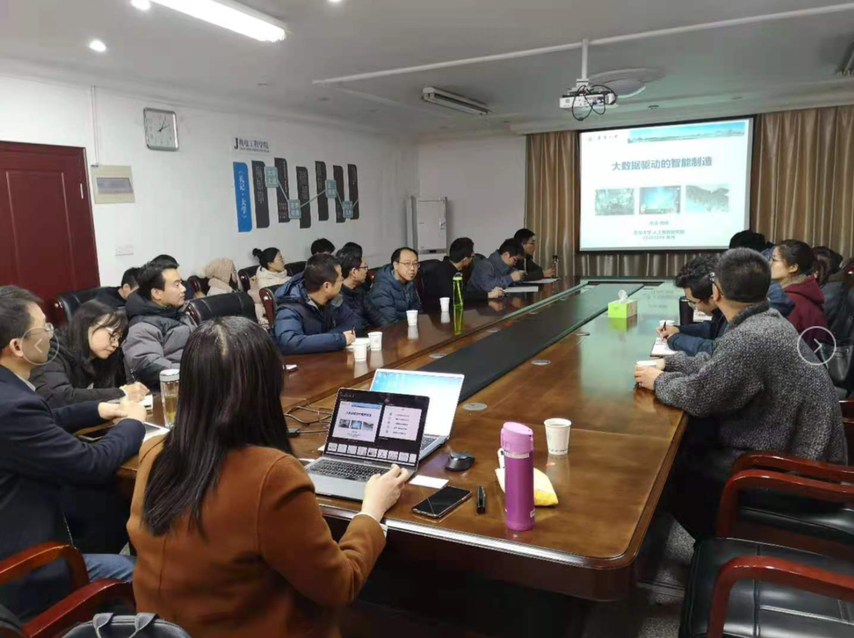 12月8日,东华大学人工智能研究院执行院长张洁教授应邀来我院作题为“大数据驱动的智能制造”的学术报告,报告会由白建波副院长主持,机电学院丁坤院长、苑明海副院长、王延杰副院长等40多位老师和研究生参加了此次会议。