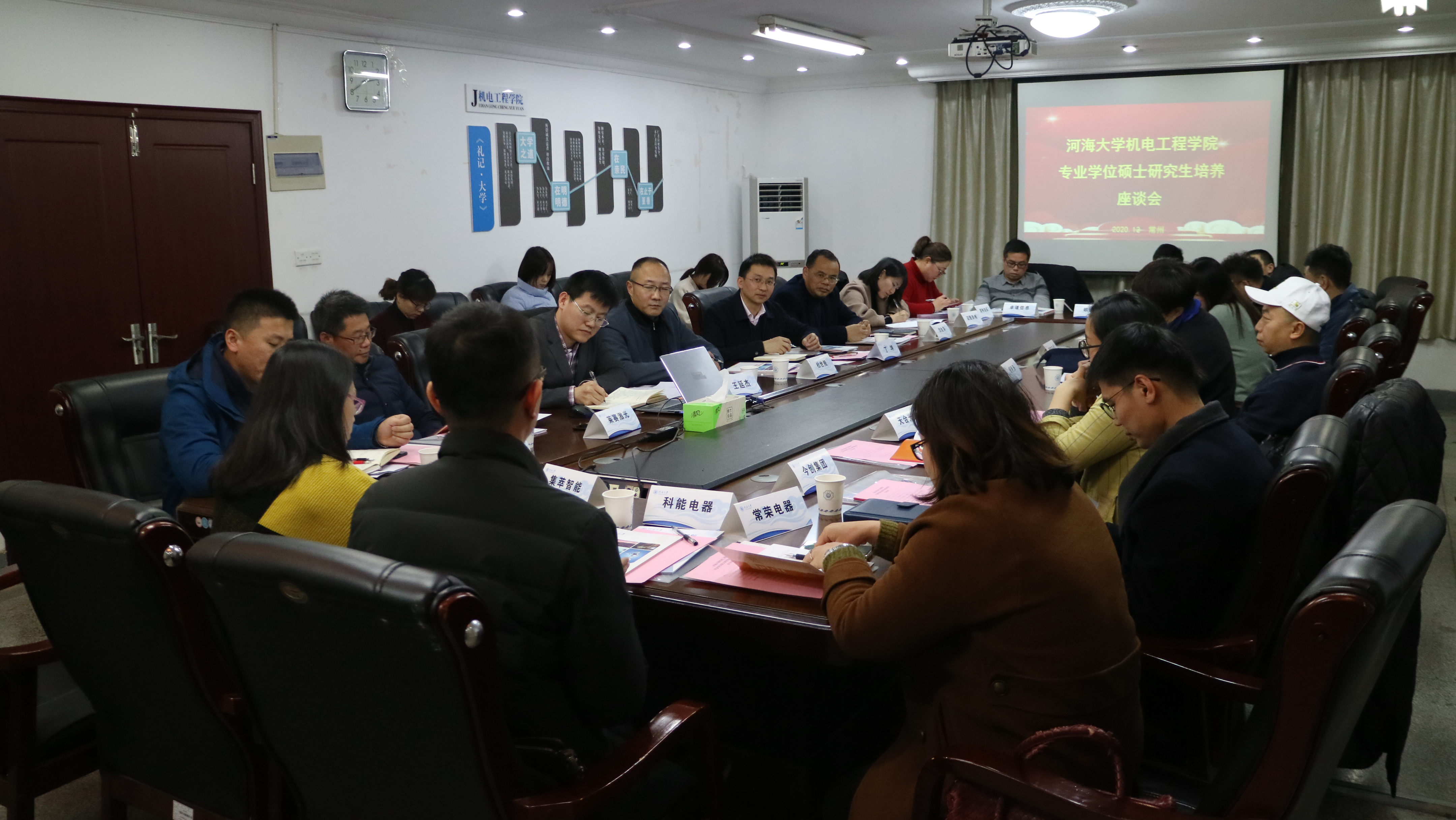 常州星宇车灯股份有限公司、天合光能股份有限公司、梅特乐-托利多(常州)测量技术有限公司、温康纳(常州)机械制造有限公司等18家设有研究生工作站企业的高管、管理专员,全体新聘企业导师及校内导师代表参加会议。