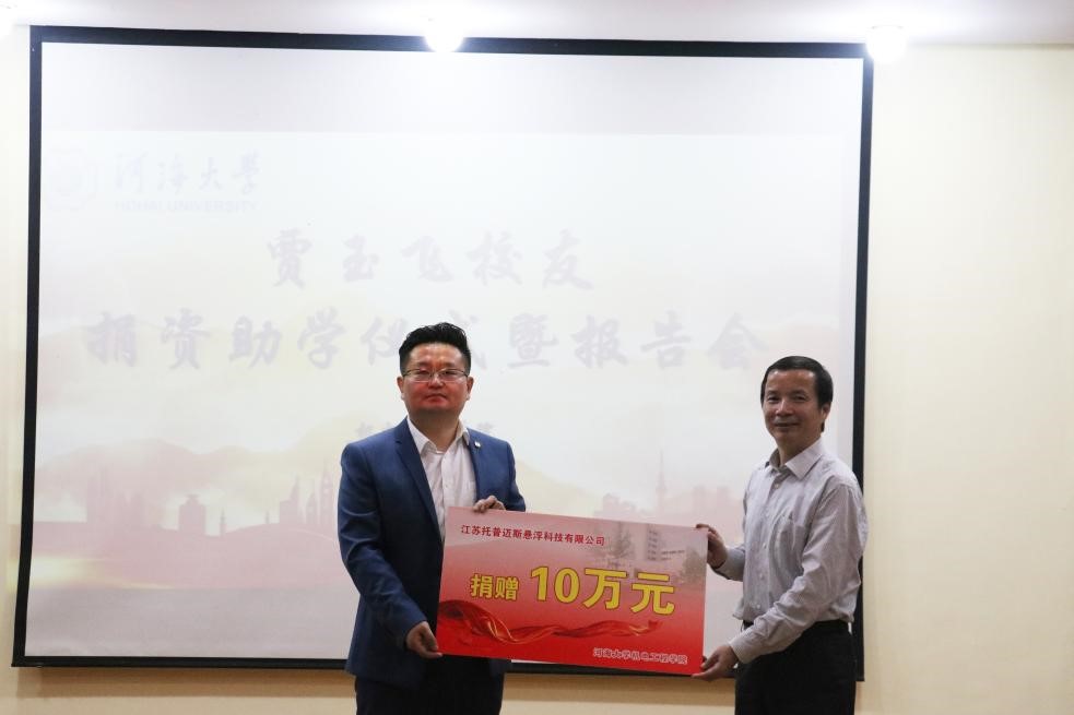 5月31日下午,“贾玉飞校友捐资助学仪式暨报告会”于厚德楼M112顺利召开。贾玉飞校友是太阳集团2008届工业设计专业学生,毕业后赴韩国留学读研,回国后创业,创办了江苏托普迈斯悬浮科技有限公司,目前该公司是节能风机行业的领跑者。此次,贾玉飞校友向学院资助了10万元人民币,用于创建托普迈斯联合实验室和支持学院学生组织开展各项学生活动。