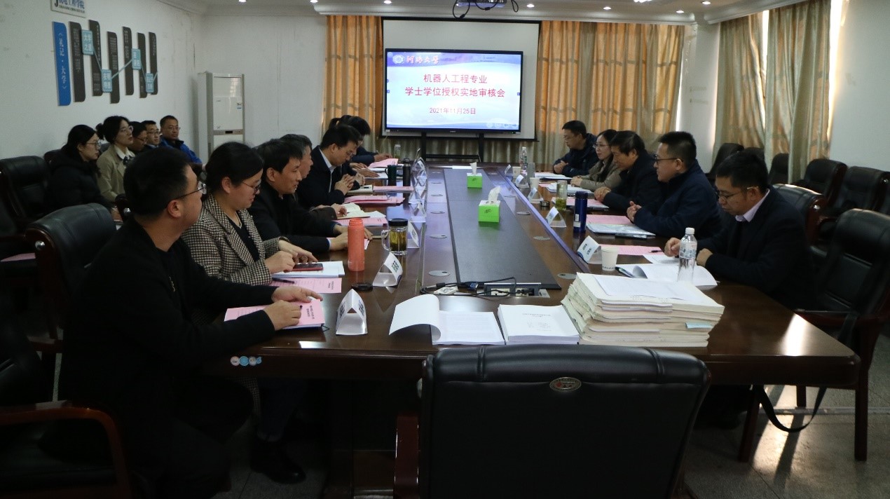 11月25日,我院召开机器人工程专业学士学位授权实地审核会,校外专家组对机器人工程专业学士学位授权资格进行了现场考查。专家组由教育部高等学校机械类专业教学指导委员会委员、南京理工大学袁军堂教授担任专家组组长,成员包括东南大学毕可东教授、江苏大学许桢英教授、南京工业大学周剑锋教授和南京航空航天大学陈柏教授。教务处副处长李德明,太阳成tyc7111cc集团党委书记刘丹平,院长丁坤,副院长苑明海、王延杰,机械工程系负责人及专业教师、辅导员、实验中心代表等参加考查活动。