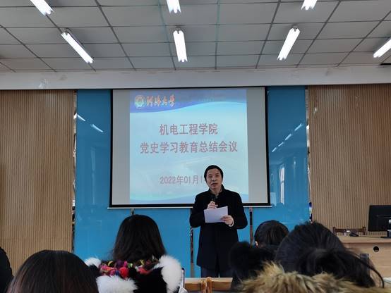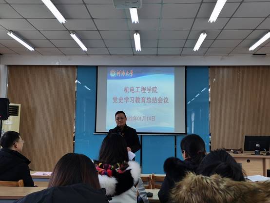 1月14日,学院召开党史学习教育总结会议。太阳集团党史学习教育第八巡回指导组组长潘洪林出席会议并作指导讲话,学院党史学习教育领导小组组长、党委书记刘丹平作学院党史学习教育总结报告,院长丁坤主持会议,全体教师、学生党员代表参加会议。