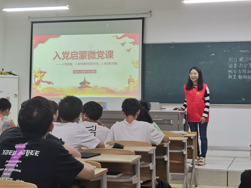 各学生党支部分别面向本专业的新生班级开展入党启蒙教育微党课。支部优秀党员代表向新同学分享自己的入党故事,并详细讲述从递交入党申请书起到成为一名正式党员培养考察的流程;支部委员介绍党员组织发展各阶段书面材料撰写的规范要求,以及要避免出现的常见错误;党支部书记围绕“大学生为什么入党”以及“怎样做才能入党”与新生进行互动交流,引导新同学在进入大学后要树立远大理想,明确奋斗目标,锻炼本领才干,既要学好专业知识,也要积极参与各项实践活动、志愿服务,努力成长为全面发展的新时代青年大学生,要以实际行动积极追求进步,争取早日加入中国共产党。