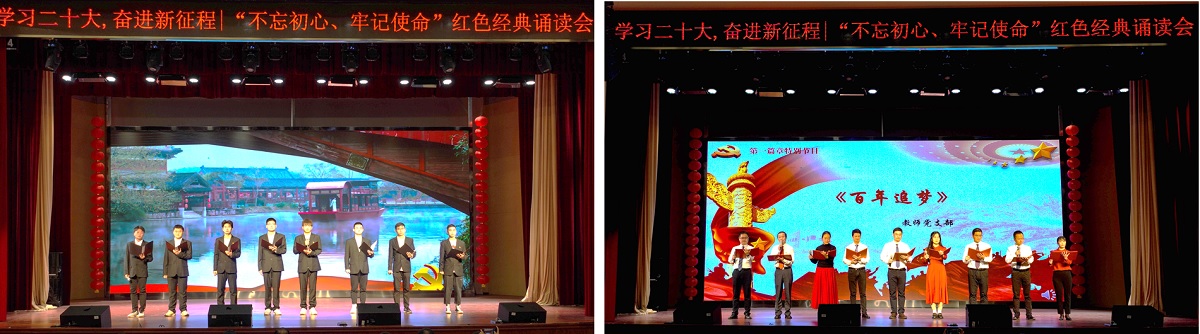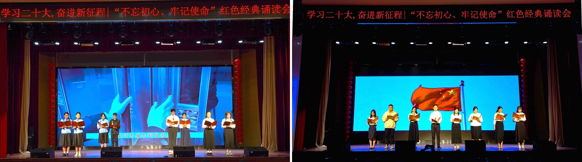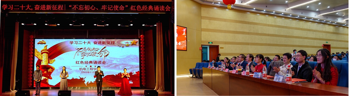 为深入学习宣传贯彻党的二十大精神,激励全体师生通过诵读红色经典,传承红色基因,筑牢精神信仰,汲取奋进力量。11月4日晚,学院党委在大学生活动中心举办“学习二十大,奋进新征程”红色经典诵读会。全体学生党员、教师党员代表、学生干部以及入党积极分子参加活动。
