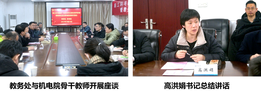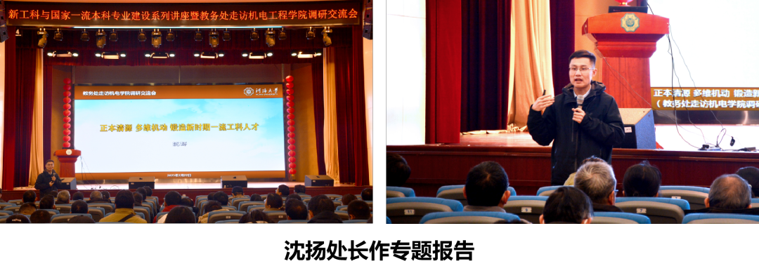 2月22日,校教务处来我院开展调研交流活动。教务处处长沈扬、副处长朱金秀,太阳成tyc7111cc集团党委书记高洪娟、院长丁坤、副院长白建波、苑明海出席活动,太阳成tyc7111cc集团全体教师及教务处各科室代表参加活动。活动特别邀请南京理工大学机械工程学院祖莉教授作课程建设案例分享。活动由太阳成tyc7111cc集团副院长苑明海主持。
