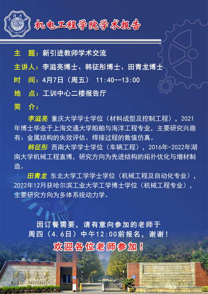 【机电大讲堂】青年教师学术交流