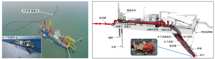 绞吸挖泥船是港口航道建设的国之重器。目前绞吸船的挖掘-输送过程控制严重依赖驾驶员的经验和手动操作,面临的难题包括,挖掘-输送过程工序冗繁、劳动强度大,夜间长时间手动操作容易驾驶疲劳,时常引发安全事故;手动操作的经验依赖性强,驾驶员操作水平良莠不齐,优秀驾驶员的操作经验难以积累和传承;海上作业远离陆地,施工环境恶劣,安全风险高,企业招工日益困难;海上绞吸船装机功率通常可达上万千瓦,其挖掘-输送过程的能耗占比超 90%,手动操作难以充分发掘设备效能,导致产量低、能耗高。