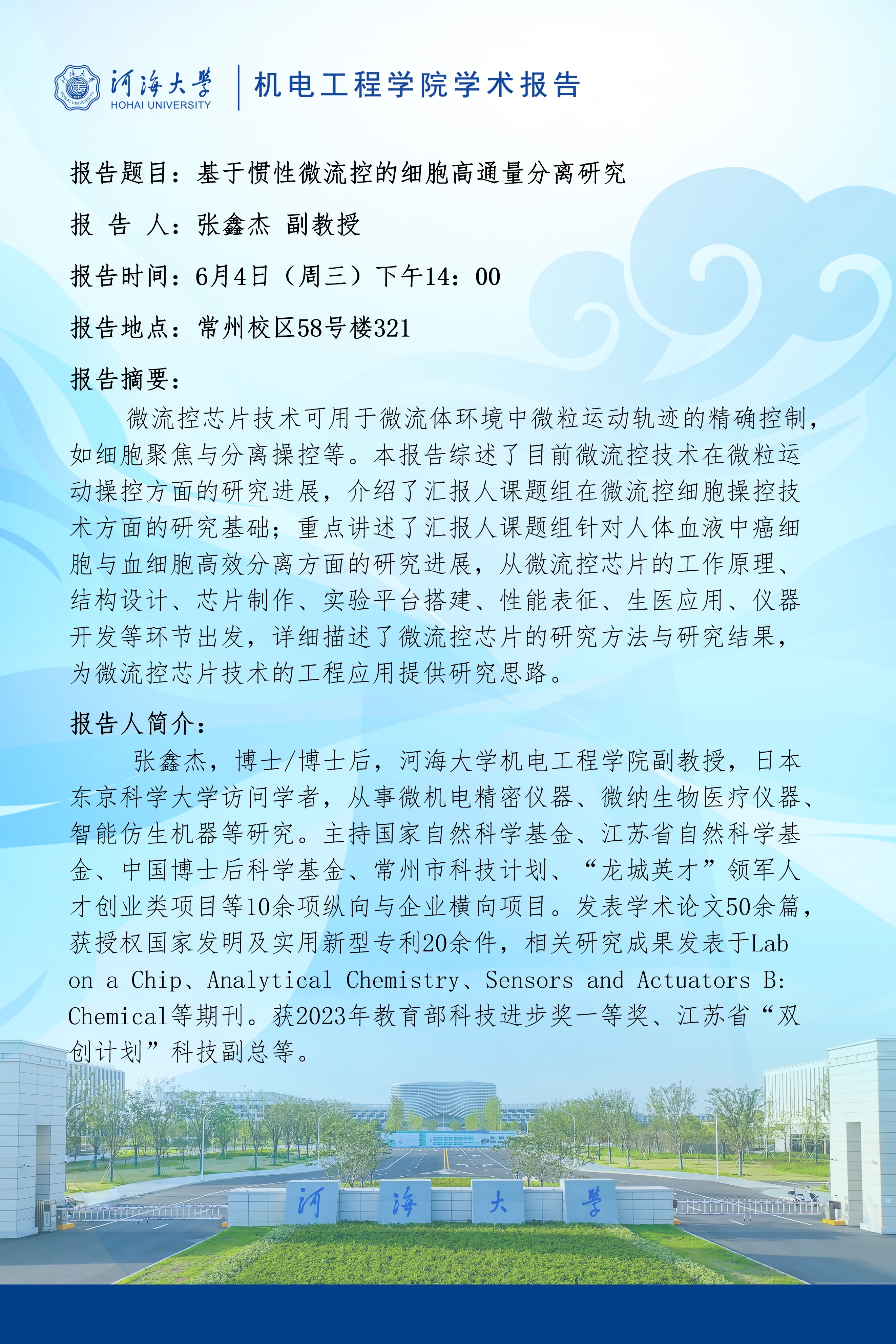 学术报告:基于惯性微流控的细胞高通量分离研究
