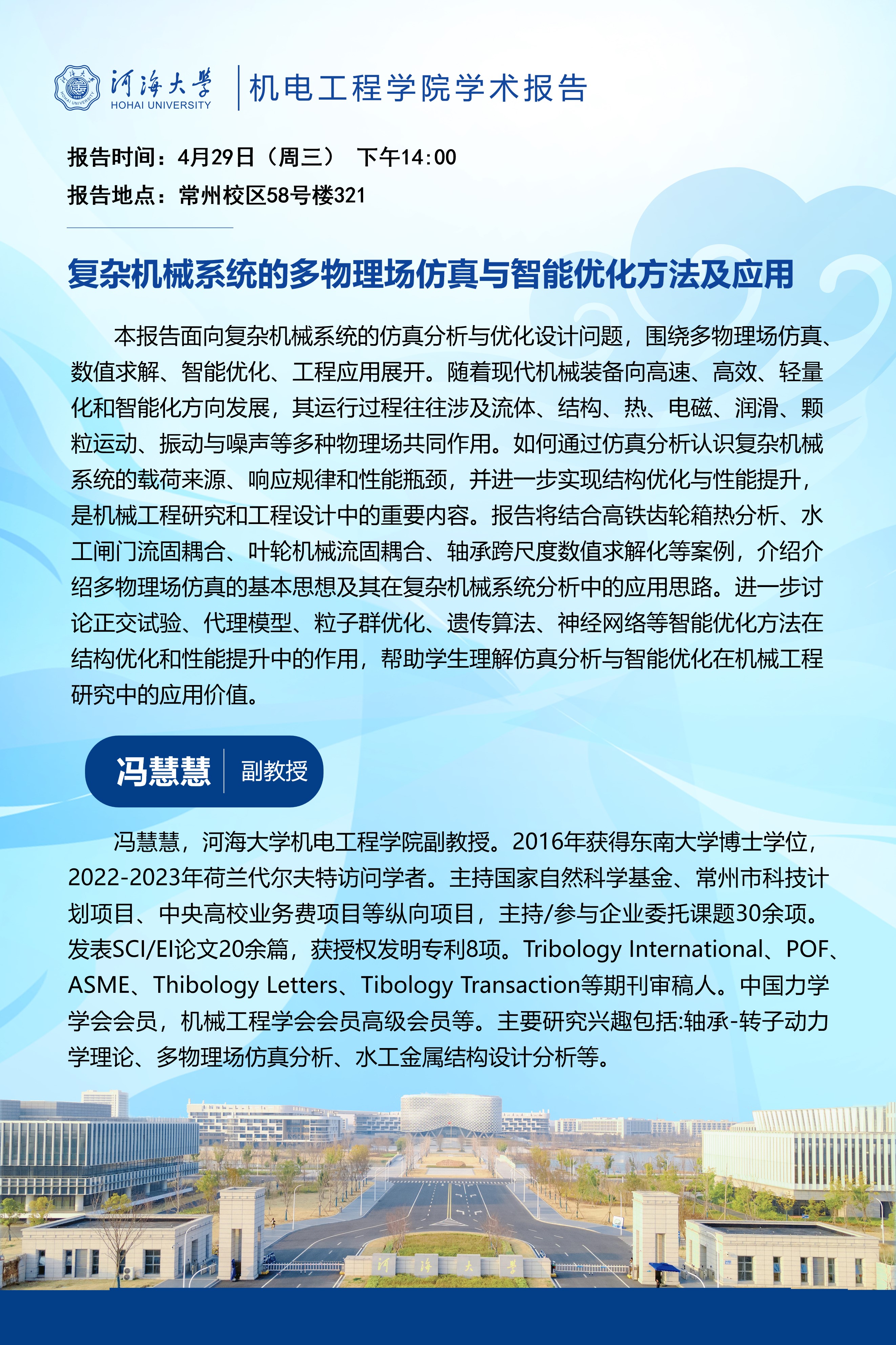 学术报告:复杂机械系统的多物理场仿真与智能优化方法及应用